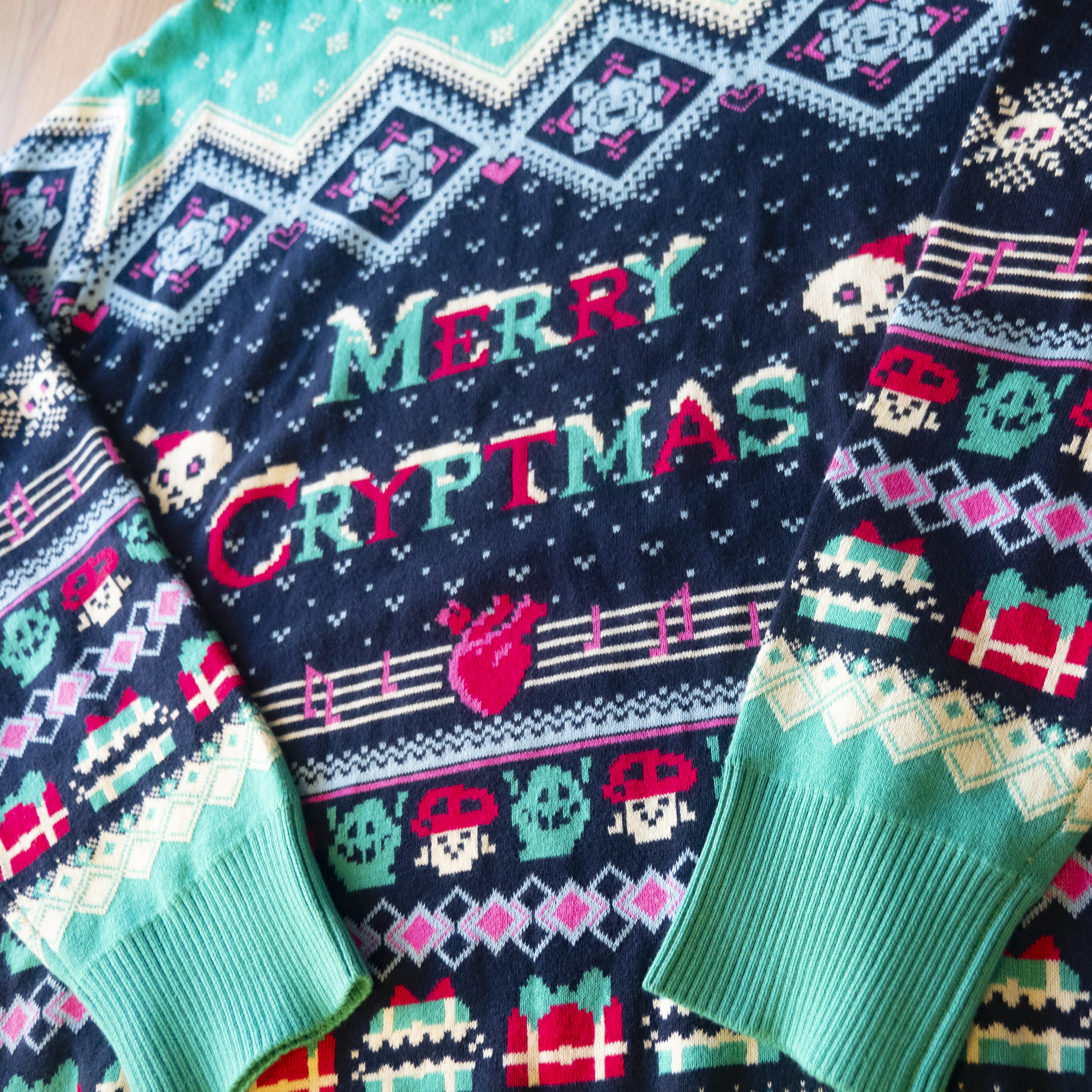 That’s right, the ghouls and the groove are coming out of the crypt for the holidays to keep you toasty in this sweater designed by Brace Yourself Games’ own Vivian Huang. Made of 100% knitted acrylic, this piece will keep you warm and cozy whether you’re gaming or spending time with loved ones!